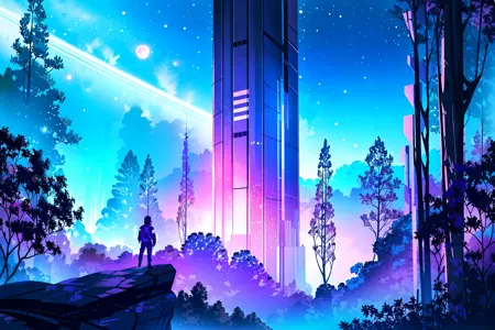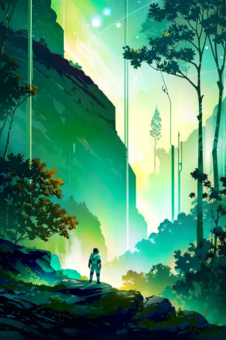 このLoRAは特定のスタイルのデジタルペイントされた風景画像を多数学習させて作成されています。キャラクターへの適用は確実ではありませんが、試してみてください。