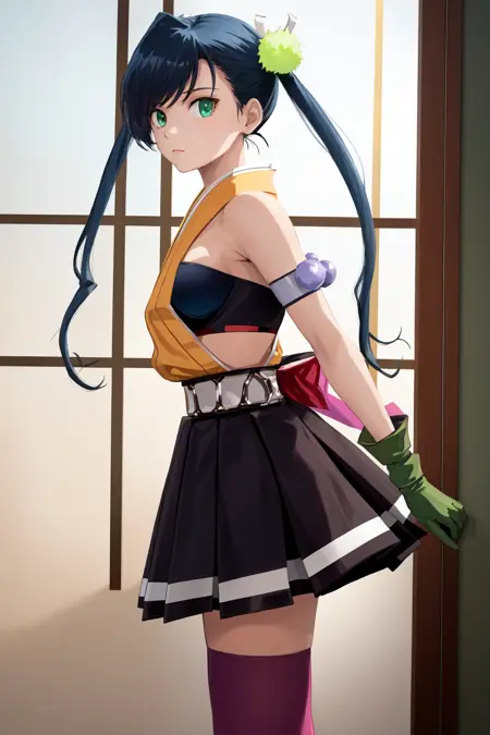 来自《虫师》的Hibachi角色LoRA,经过轻微过训练以更好地捕捉服装色彩。示例中使用了LoRA权重=1,并结合高分辨率修复ESRGAN_4x,去噪强度=0.5。