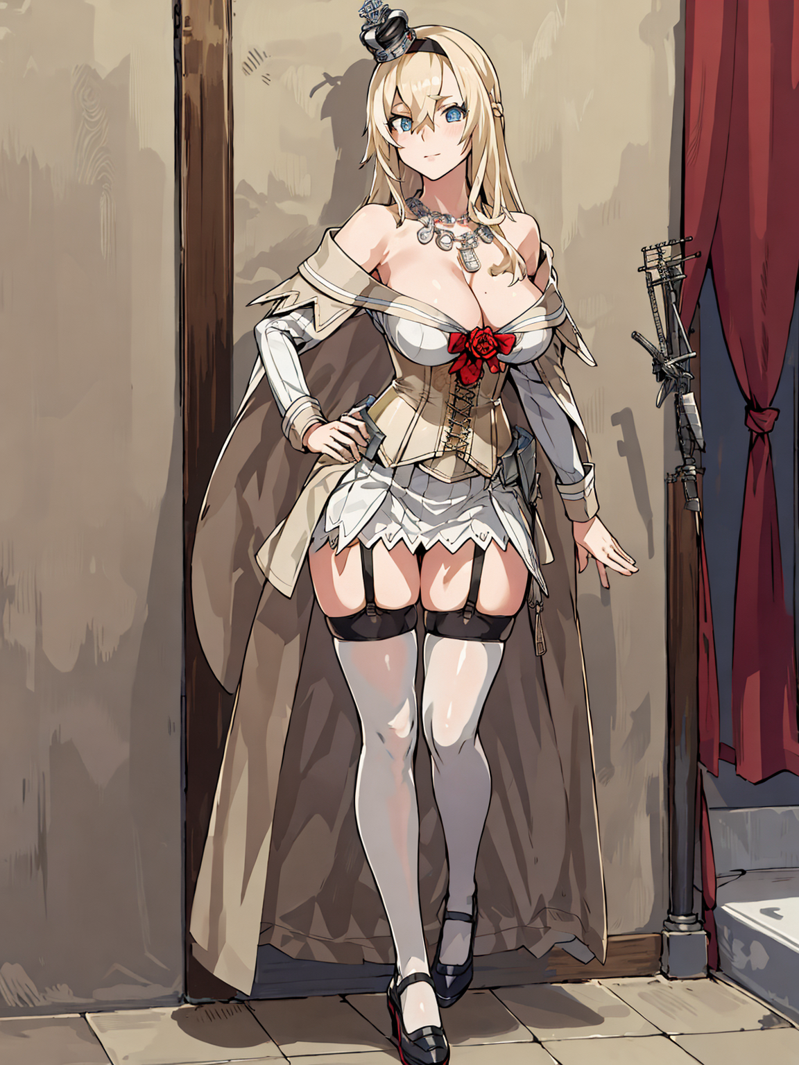 吊袜带, 过膝袜, 黑色鞋子,