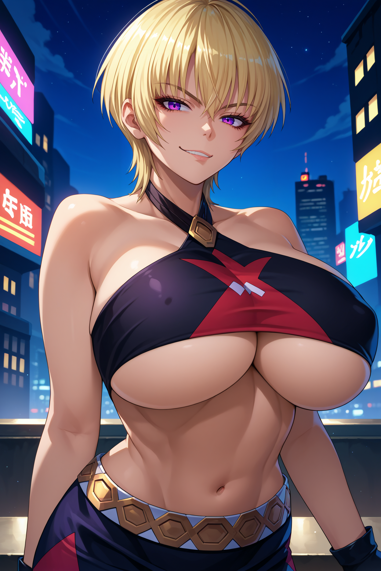 触发词为 "n16sna",且必须包含 "金色头发,短发,紫色眼睛"。