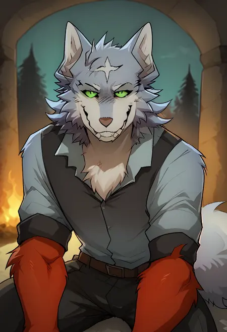 furry, short hair, two-tone fur,happy, smile, fangs, gloves, ...your tags...