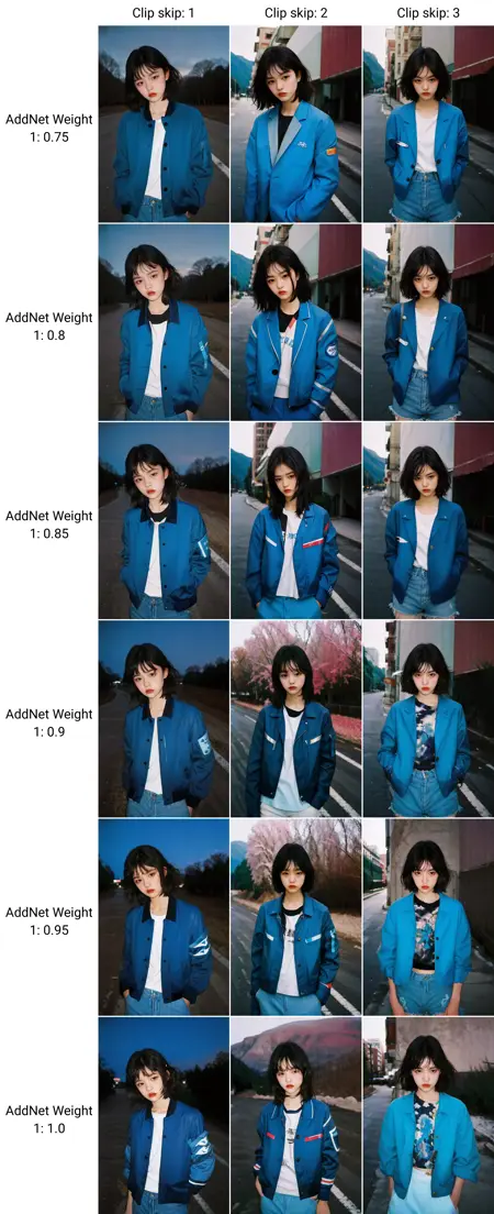 LowRa:0.4~0.7、epiNoiseoffset:0.5~1.5、およびepiNoiseoffset:0.4~1.5を推奨します。add detailを約0.25程度に設定すると、画像がよりHDになります。