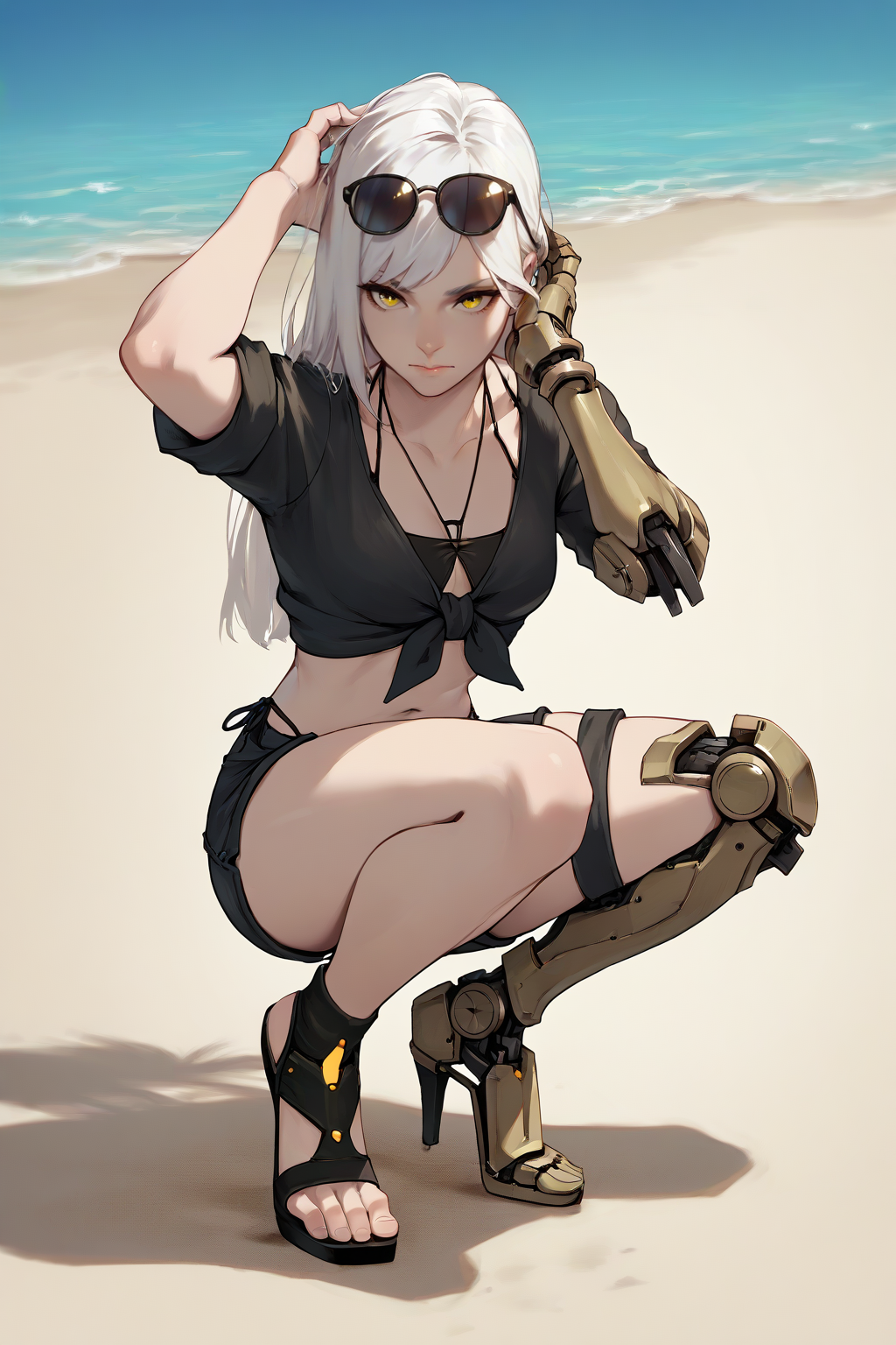 1girl, solo, white hair, long hair, bangs, yellow eyes, prothesis(使用面罩时去掉“刘海”和“眼睛颜色”)