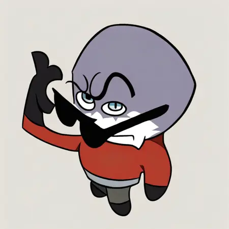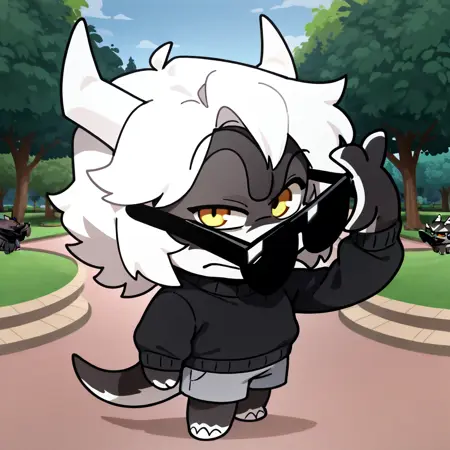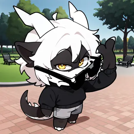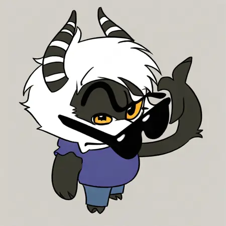 mikus-concept, sunglasses, standing, confident pose, raised eyebrow, chibi