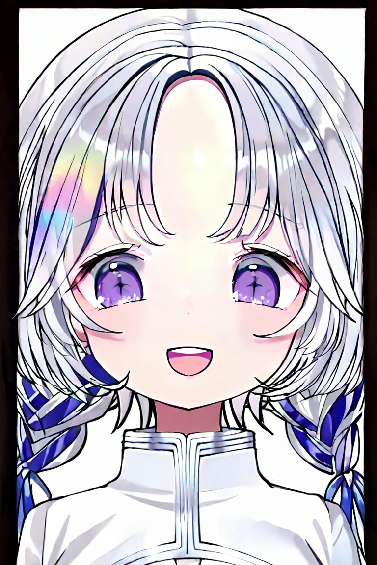긴 머리, 앞머리, 리본, 더블 테일, 파란 머리, 머리 리본, 땋은 머리, 하얀 머리, 다색 머리, 가상 유튜버, 스트라이프 머리, 갈라진 앞머리, 낮은 더블 테일, 하얀 머리 장식, 위쪽 이빨, ;d, 초상화, 더블 땋은 머리, 파란 리본, StelLive1, AyatsunoYuni