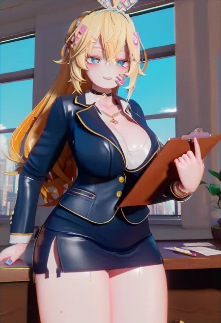 jinhong (vrc),blonde hair, hair clips, 3d model, 3d,