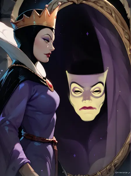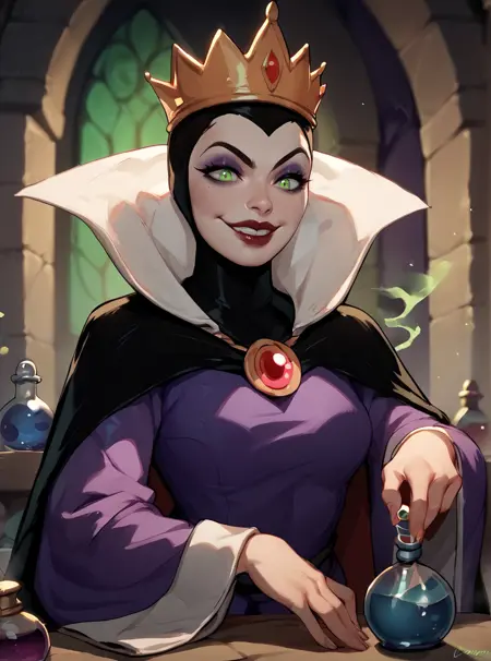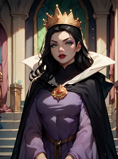 | 训练词汇 | grimhilde, green eyes, makeup, lipstick, black and red cape, white collar, purple robe, crown, black balaclava已复制! grimhilde, green eyes, makeup, lipstick, black and red cape, white collar, purple robe, crown, blonde hair, long hair已复制! grimhilde, green eyes, makeup, lipstick, black cape, white collar, purple robe, crown, black hair, long hair已复制! grimhilde, green eyes, makeup, lipstick, black and red cape, white collar, purple robe, crown, white hair, long hair已复制! oldhilde, old woman, green eyes, makeup, White hair, hood and black cloak, big nose, wart on nose, big nails, hunchback, toothless, one tooth已复制! |