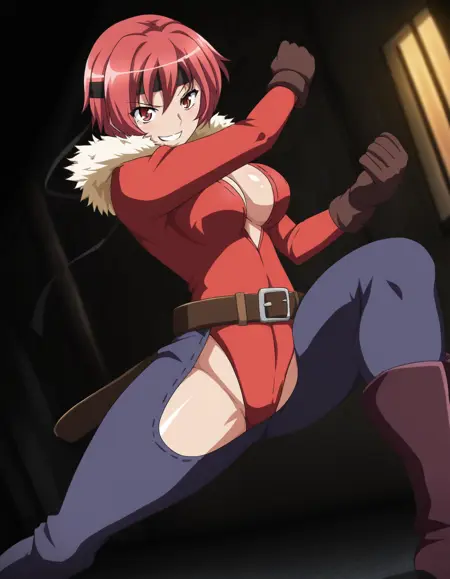 m41a, (빨간 눈동자:0.4), 헤드밴드, 빨간 레오타드, 모피 장식, 벨트, 챕스