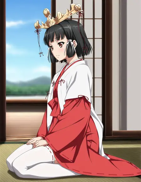 k4g5ya, (갈색 눈동자:0.4), 왕관, 미코, 흰색 허벅지 양말, 푸ンド시