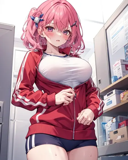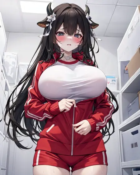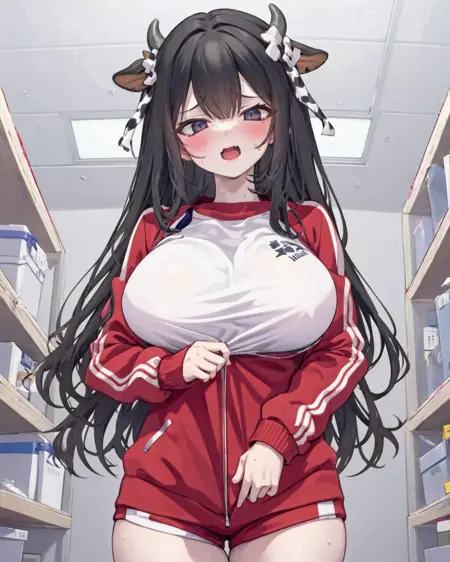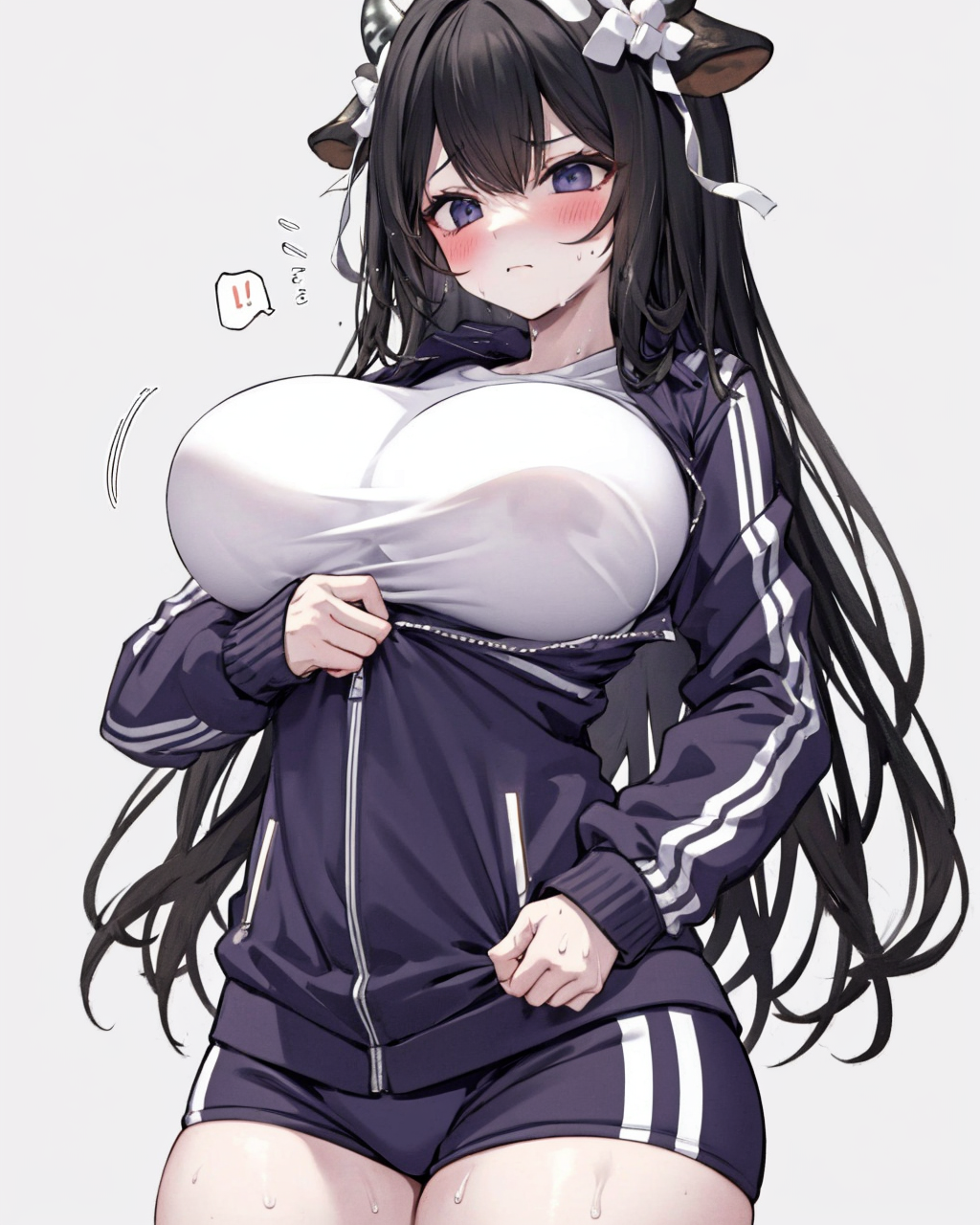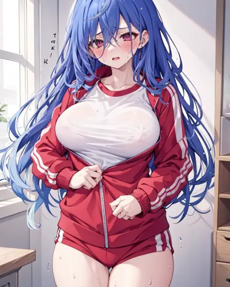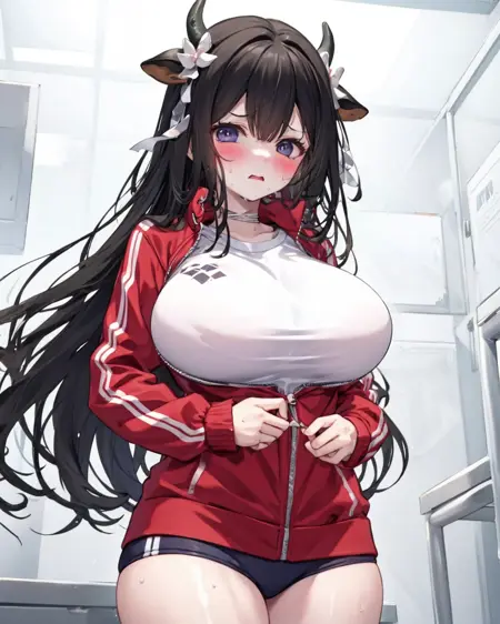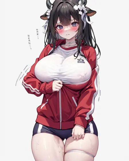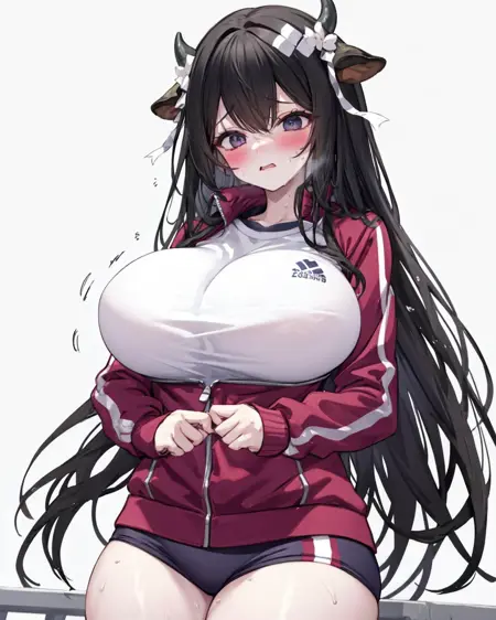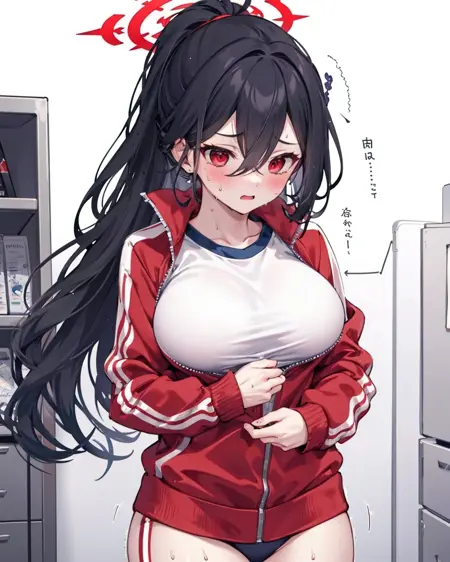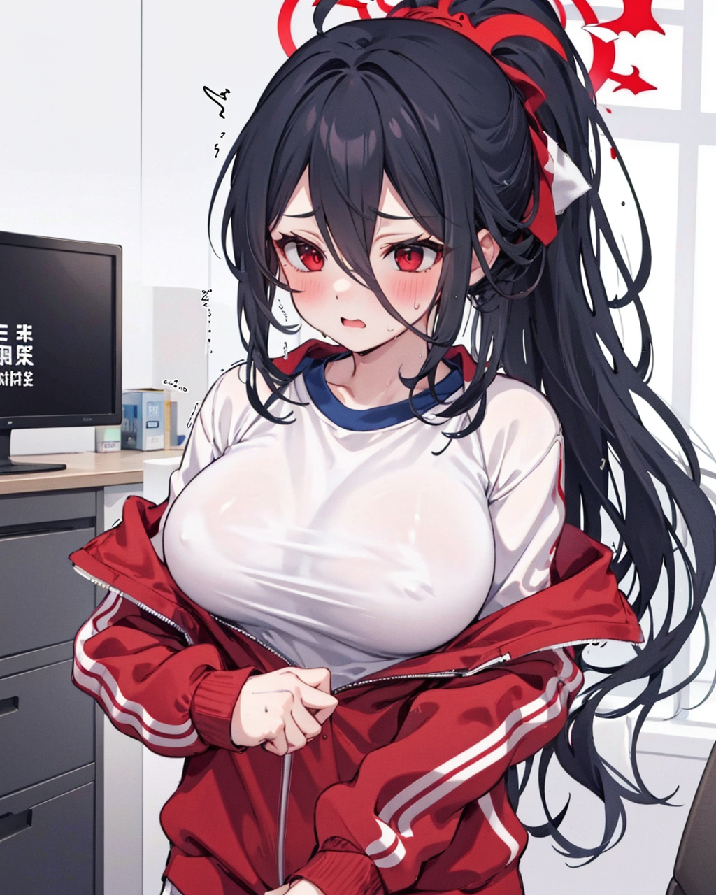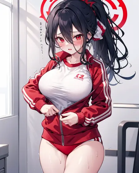 似乎这个 LoRA 出乎意料地从《Blue Archive》中学习了“羽须美”(体操服)的特征,她的提示词为:“hasumi \(gym uniform\) \(blue archive\), 马尾辫, 红眼睛, 黑发, 头发遮住眼睛, 光环, 运动夹克”。