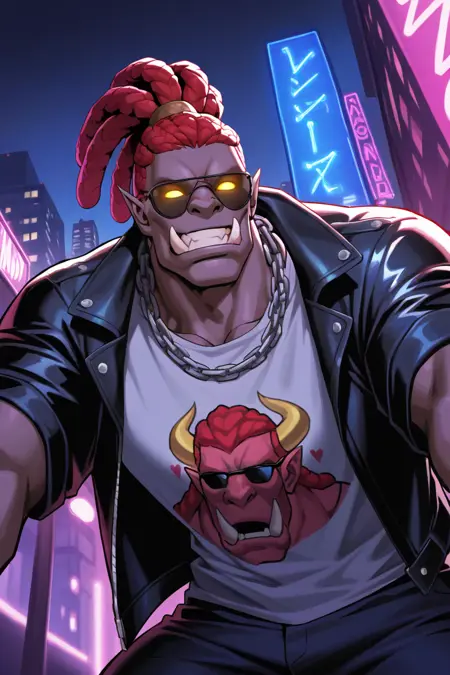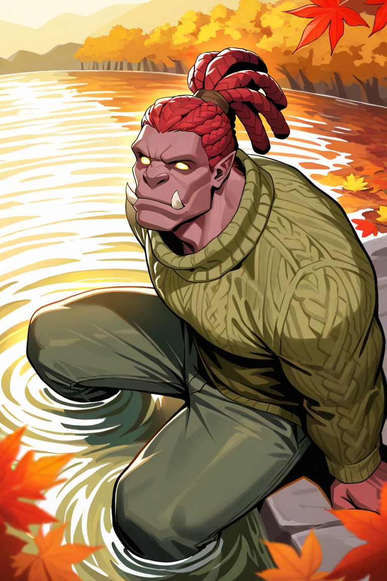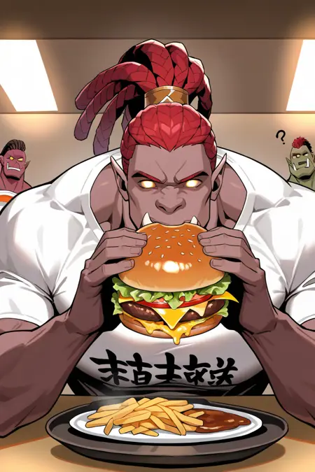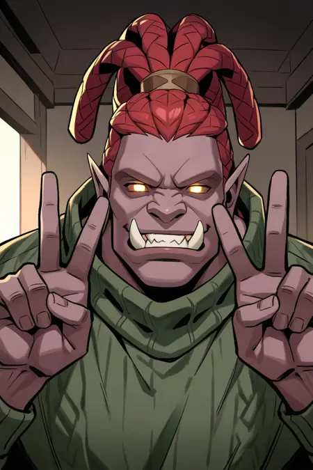 red colored skin-orc focus, BalmondML, 1orc, anime screencap