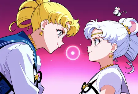 该模型主要基于原始的《美少女战士》系列训练。你可以使用“复古艺术风格,1990年代(风格)”来获得该风格。