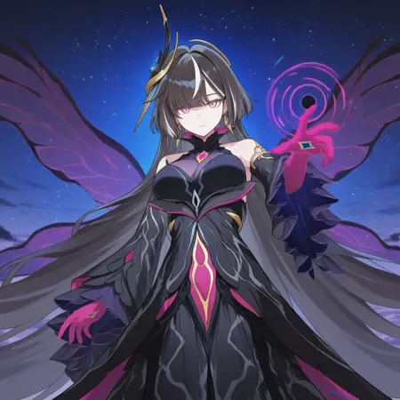 Leylah, black hair, multicolored eyes, white hair, streaked hair, long hair, hair ornament,