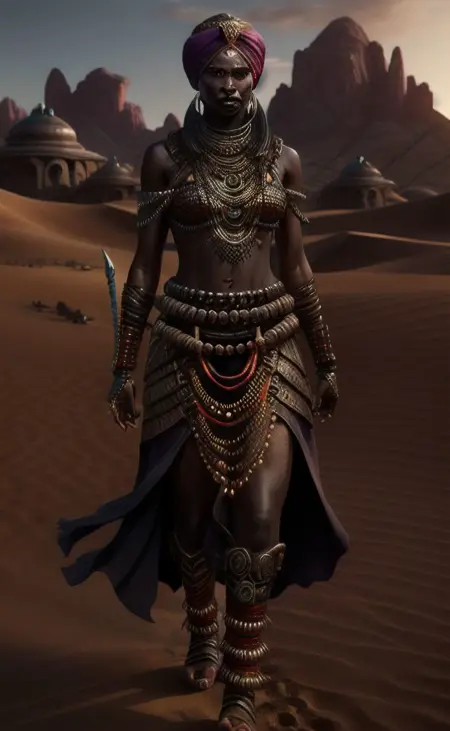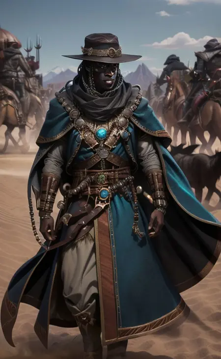 これは、中世の砂漠民族ファンタジーのメンバーを生成できるAIモデルです。特に、私のロールプレイングゲーム世界「ランドヘルベン」に登場するラエダールを描くために設計されました。