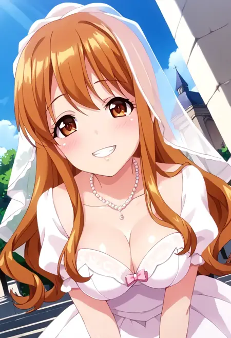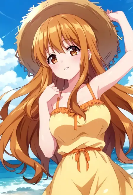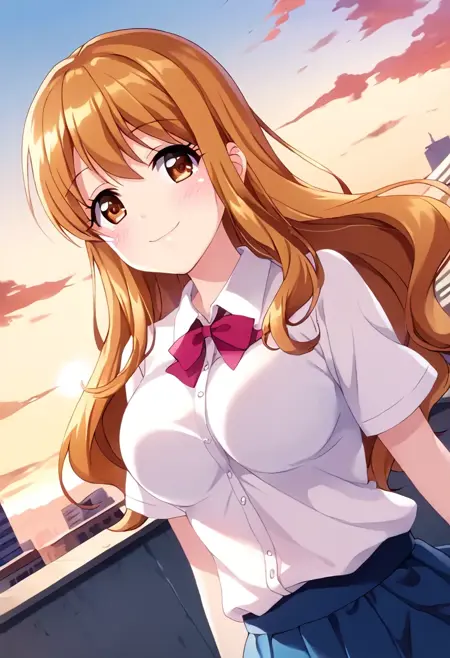 Minami Aki, long hair, brown eyes, brown hair, orange hair