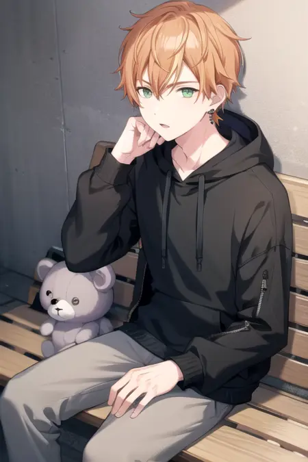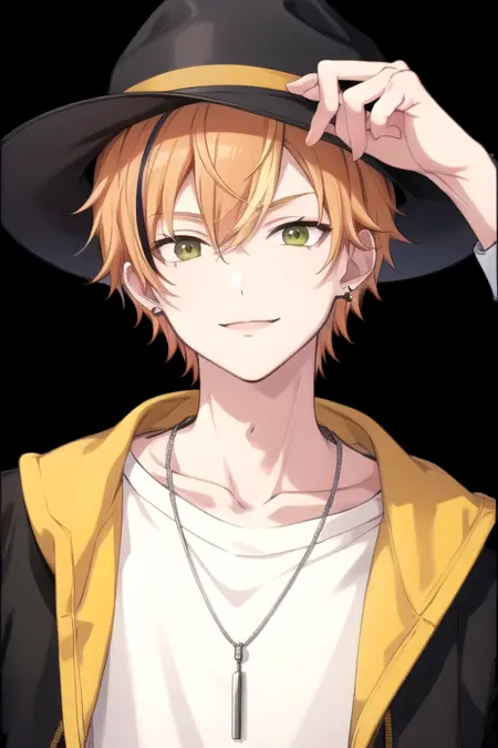 1boy, solo, orange hair, green eyes