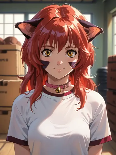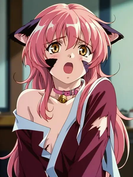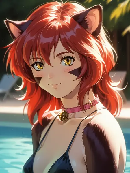 推荐提示词:ht_nina,胡须斑纹,身体毛发,粉色项圈,颈铃