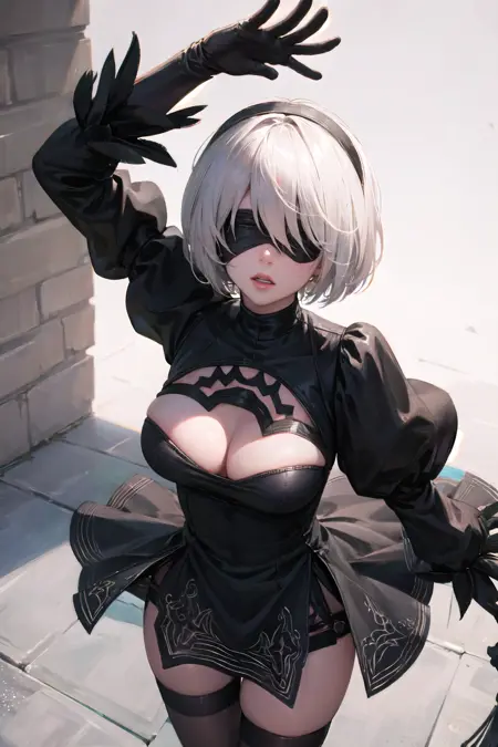 추가 태그: blindfold, black blindfold, large breasts, blue eyes