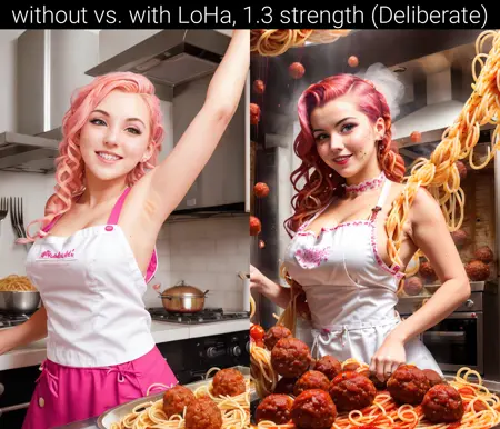 여러분을 환영합니다, 쓰레기통에 오신 걸 환영합니다! 이 LoHa LyCORIS(자동1111에서 사용하려면 확장 프로그램이 필요합니다)는 441장의 완전히 미친 이미지로 학습되어 혼란과 엉망진창 스파게티 악몽을 만들어내는 데 도움을 줍니다. 필요에 따라 상당히 높은 강도(일부 모델에서는 1.5)까지 안전하게 사용할 수 있습니다. 주로 526Mix의 txt2img 생성물을 사용해 학습되었으므로, 이 믹스에서는 강도를 낮게 유지하고, 다른 계열의 모델에서는 강도를 높이는 것이 좋습니다.