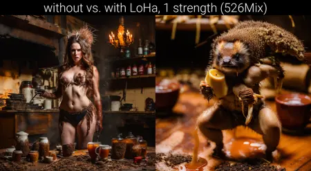 Welcome to the garbage-bin, a LoHa LyCORIS (for which you need an extension on Automatic1111) trained on a dataset of 441 utterly unhinged images to aid in the creation of chaos and sloppy spaghetti nightmares. Can be cranked up to fairly high strengths (1.5 for some models) pretty safely if need be. Trained on 526Mix using mostly 526Mix txt2img gens, so you'll want to keep strength lower on that mix, and up for models of a different lineage.