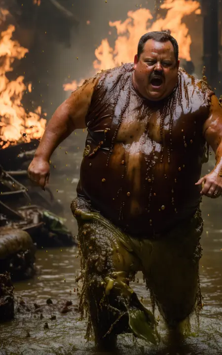 Sloppy. Imagine carrying a deep dish lasagna with extra sauce, and you trip and fall. In your falling panic, you punched the lasagna mid-air into the ceiling fan.