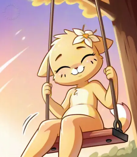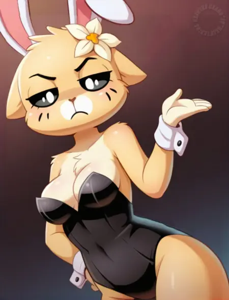 VanilkaIL, 1girl, cat, furry, anthro, eye glare, black eyes, flower hairpin