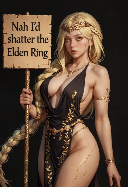 Flux character LoRA for Queen Marika the Eternal from Elden Ring.