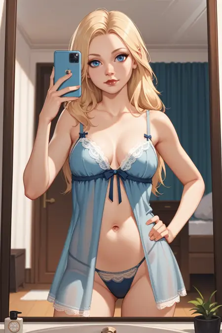 I2BC, 1girl, blonde hair, long hair, blue eyes