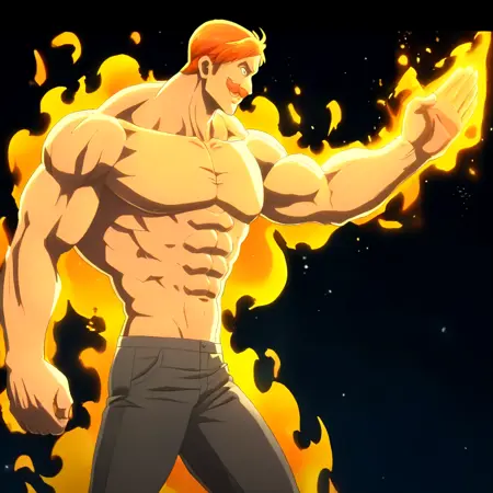 참고: 등에 있는 문신이 별로 유사하지 않으므로 이미지 생성을 권장하지 않습니다. 전신 이미지인 경우, "ADetailer"를 사용하여 눈을 다시 그리는 것을 권장합니다. 세부 사항을 향상시킬 수 있는 기본 모델을 선택해 주세요. 그렇지 않으면 몸에 있는 불꽃이 흐릿해질 수 있습니다.