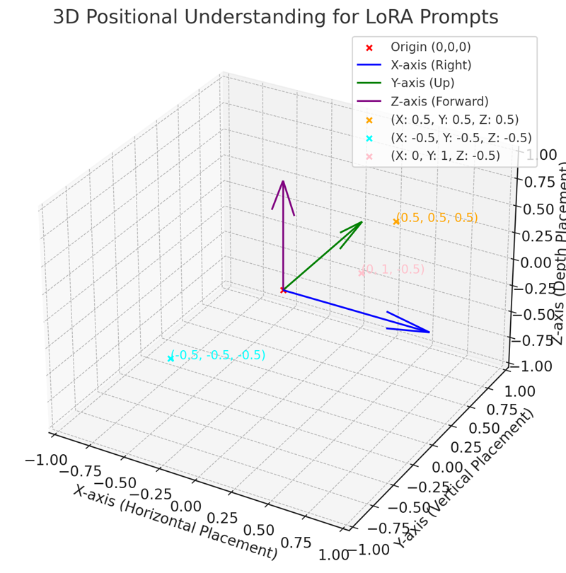 説明の生成:メタデータに基づいた位置・構成に関する説明を策定し、LoRAのテキスト→画像機能を改善します。