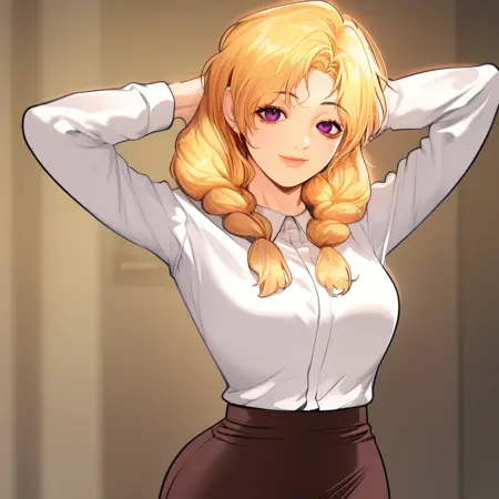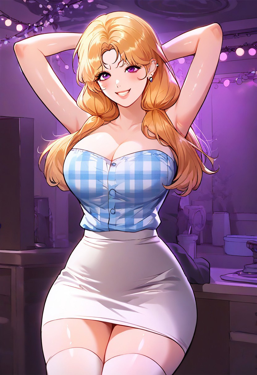 (( lora:geum_ba-da:1 , geum_ba-da, 细腰,宽臀,完美肌肤,锐利紫色眼眸,清澈双眼,明亮瞳孔,美丽眼眸,金色长发,低双马尾,中等胸围,自然美,绝美女子,迷人女性,超性感女性,欲望之躯,具有诱惑淫秽体态的性感女性,性感体态,丰腴体态,性感美人,无穿孔,无 piercing,))