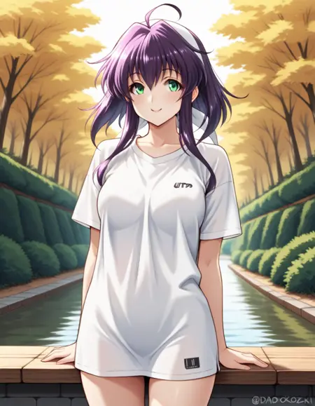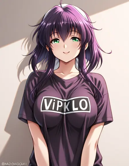 トリガーワードに加えpurple hair,green eyesを入れると安定しました。