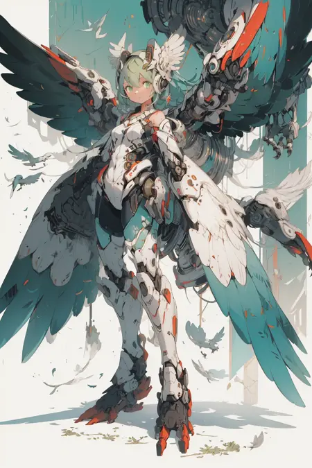 Generation Suggestions: Please use the basic model “Zoo v1.0” for training. The weight should be set between 0.6 and 0.8、This model works well with most anime-style models. Basic tags include “best quality,” “masterpiece,” “1girl,” “solo,” “full body,” “owl ear,” “wings,” “feathers,” “claws,” “white background,” and “mechanic.”