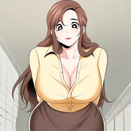 2. ((正式,长袖黄色衬衫,巨大乳沟,露骨乳沟,黄色铅笔裙,性感透黑丝袜,))