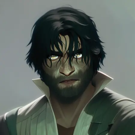 1boy, black hair, facial hair, beard,