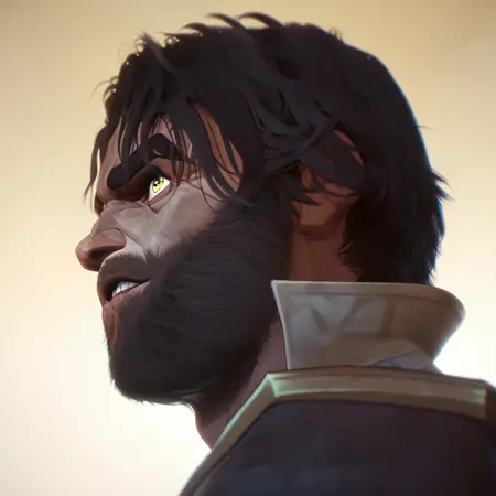 HoboJayceV1, beard, messy hair, mustache, yellow eyes,