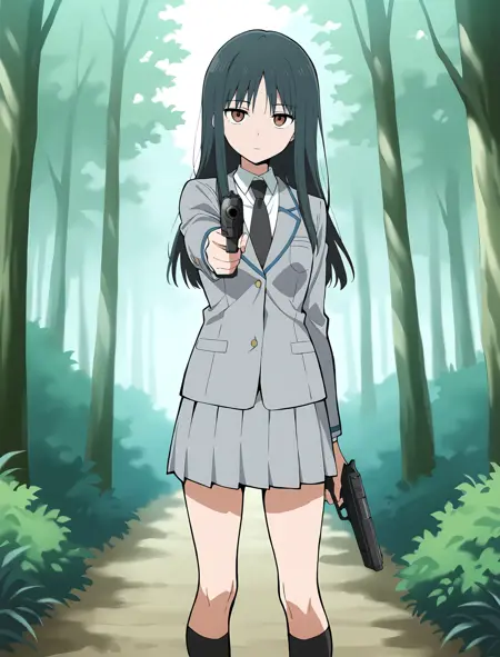 提示词推荐:Yukiko Kanzaki,black hair,long hair,brown eyes,school_uniform,gray jacket,gray skirt,white_shirt,collared_shirt,black necktie,black kneehighs
