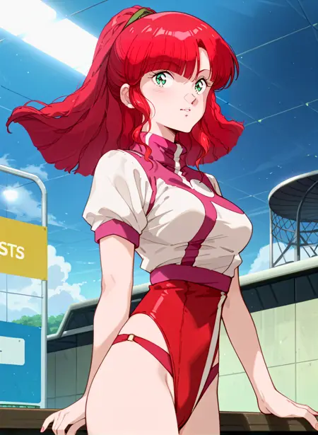 红色紧身衣,制服,高领,短袖,蓬松袖子