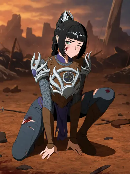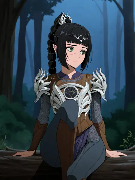shadowheart \(baldur's gate\), 黑发, 长发, 马尾, 齐刘海, 辫子, 多股编发, 发饰, 尖耳朵, 脸上疤痕, 绿眼, 发箍, 护甲, 胸甲, 肩甲, 肩部护甲