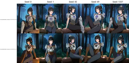 白发造型可能稍显不稳定,部分原因是模型本身对影心的标签已有认知。如需正确呈现发型,您可能需要在负面提示中添加 bangs, circlet。