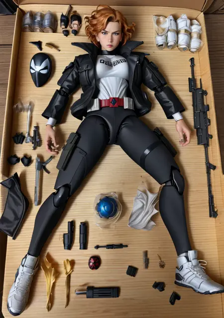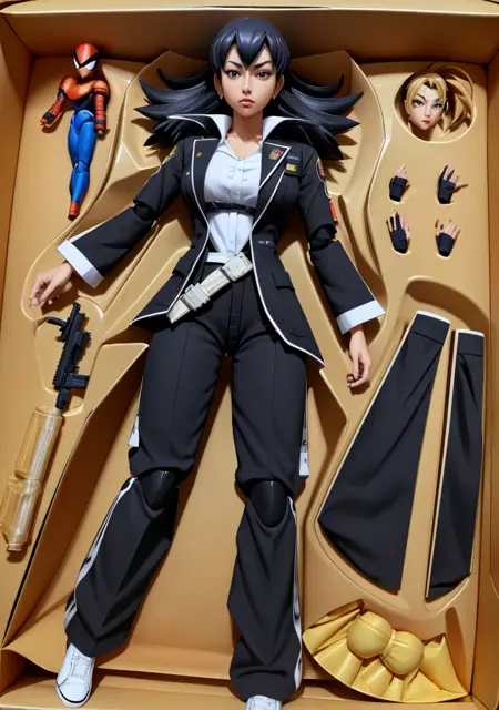 ActionFigureQuiron style,action figure box, weapon, gun, premium playset toy box, in a gift box, gift box, playset, in a box,no humans, reference sheet, lora:quiron\_ActionFigure\_v2\_Lora:1