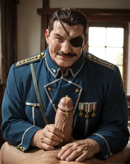 military uniform,blue jacket,blue butt cape,blue pants,white waistband,medal