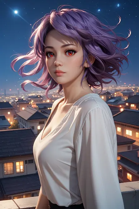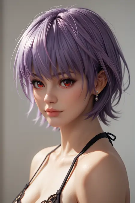 DOAAyane, 1girl, purple hair, red eyes, short hair