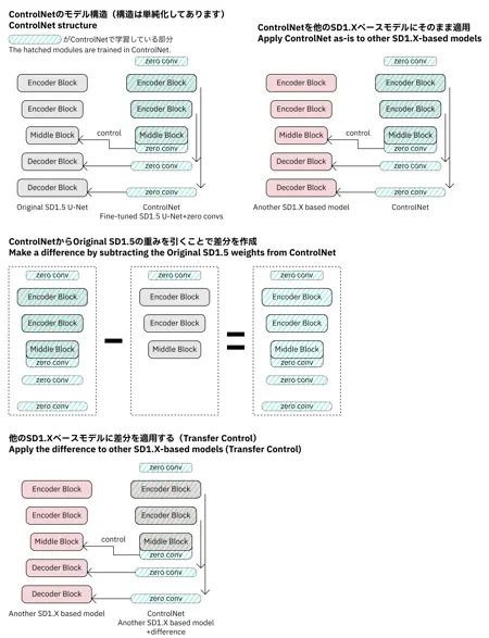 该图由 Kohya 提供,旨在用视觉方式解释原始 ControlNet 模型与差分模型之间的区别。