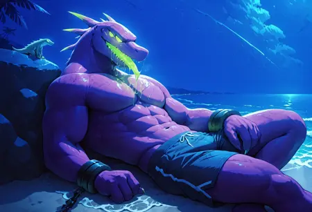 acrid, green eyes, multiple eyes, glowing, cuffs