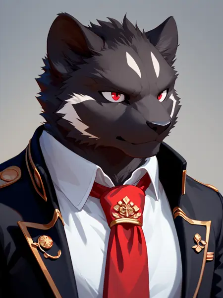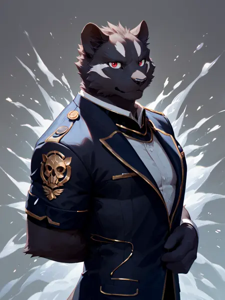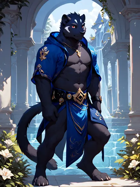 theo, theo prinz von hirschreich, black pantherine, black fur, black body, red eyes, facial markings, fur markings,