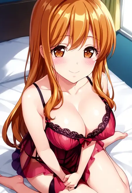 Minami Aki, long hair, brown eyes, brown hair, orange hair,