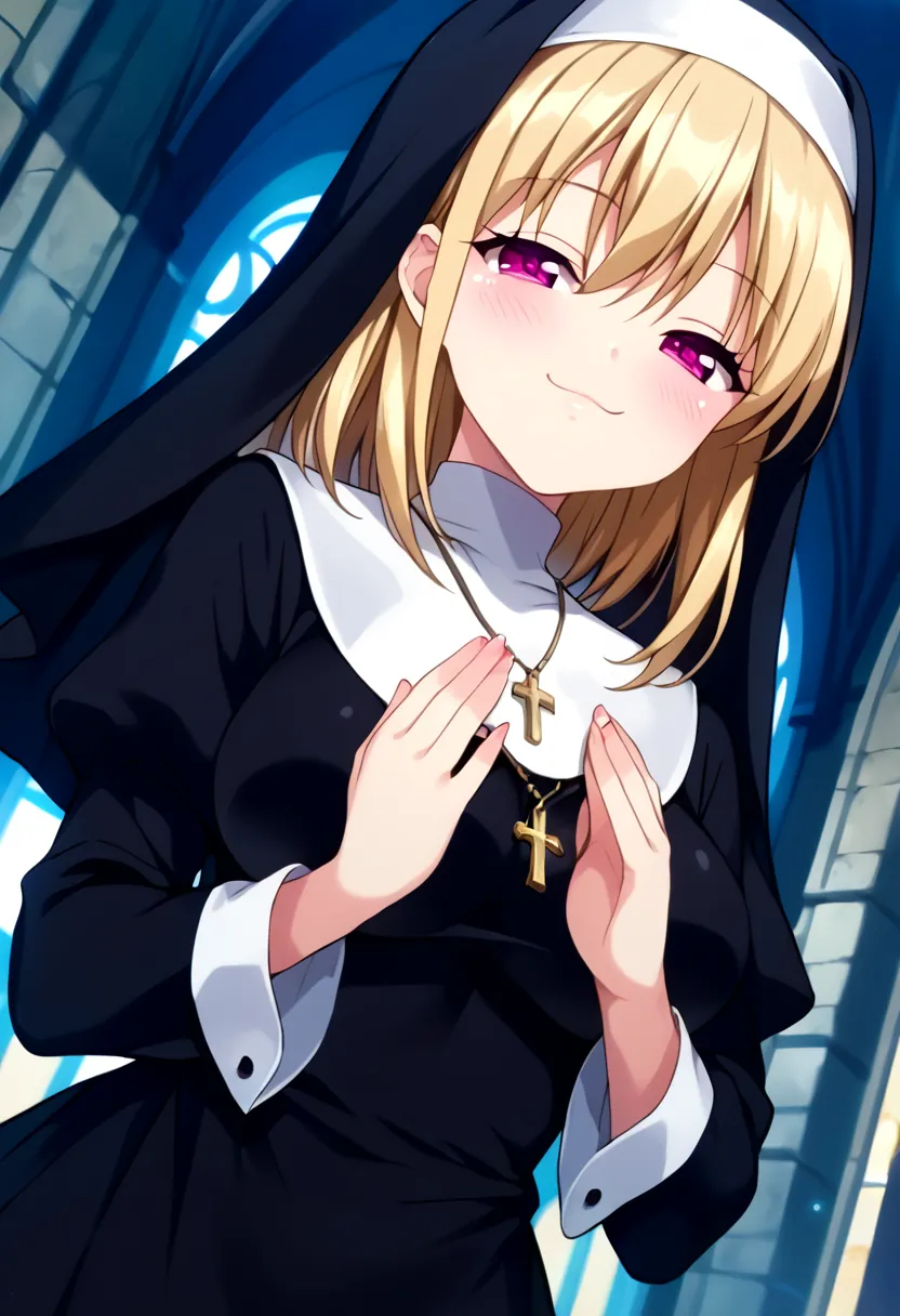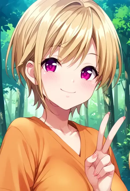 Azuma Haruki, short hair, blonde hair, purple eyes, pink eyes,