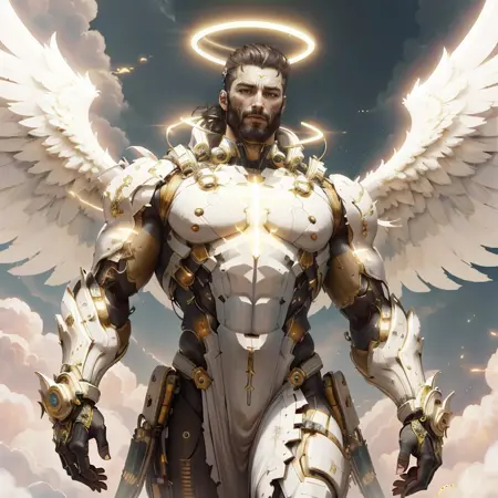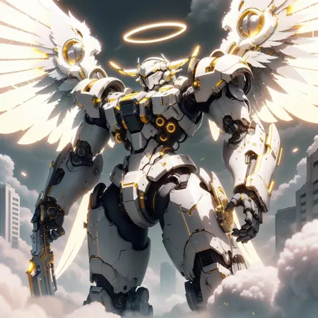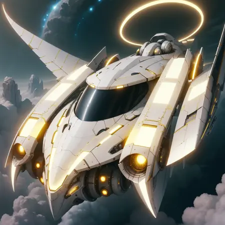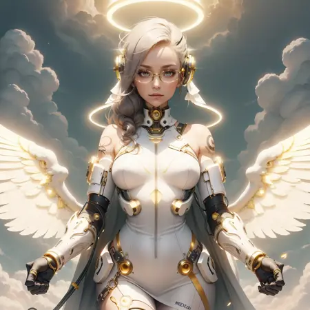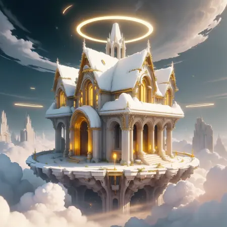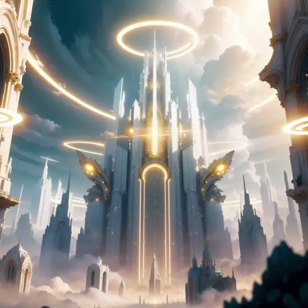 이 LoRA는 주변을 변형시켜 축복받고 천사 같은 창조물을 생성하며, 인류가 구름 위 하늘을 넘어서 탐험하고 그 지식을 활용해 Blessed tech 형태로 창조물을 만든 시대를 실현합니다.