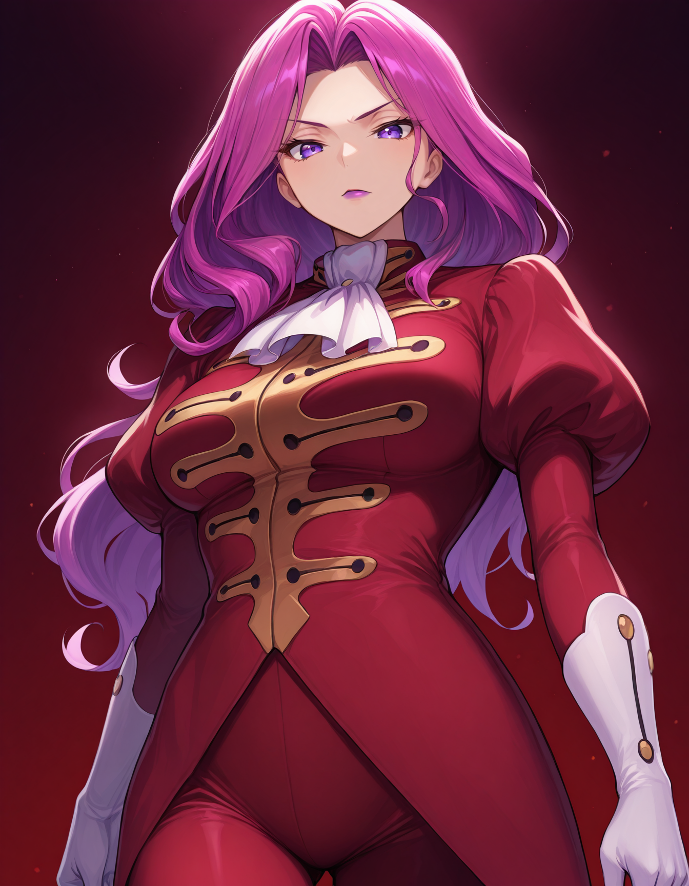 옷 1: 옷 1, 흰 장갑, 애스콧, 유니폼, 풍선 소매, 빨간 재킷, 빨간 바지